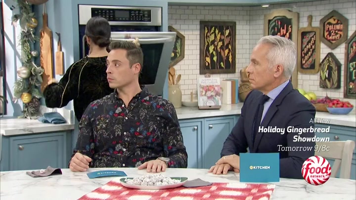 The Kitchen cooks up a show-stopping spread for the holidays beginning with Geoffrey Zakarian's Prosciutto-Wrapped Pork Loin. Jeff Mauro and Katie Lee wow the crowd with two takes on polenta -- a Four Cheese Creamy Polenta and a Creamy Lemon Parmesan Polenta with Roasted Tomatoes. Cookbook author Elizabeth Heiskell serves up some sweet holiday gifts with her Bourbon Balls and Salted Caramel Pecan Bites, then we put a modern spin on the Yule Log with a Stump de Noel Cake. Food Network's Amanda Freitag makes a show-stopping Kabocha and Acorn Squash side dish. Finally, Katie creates a Caprese Wreath topped with all the tasty trimmings and we toast to the holiday with a Big Batch Pomegranate Cocktail.