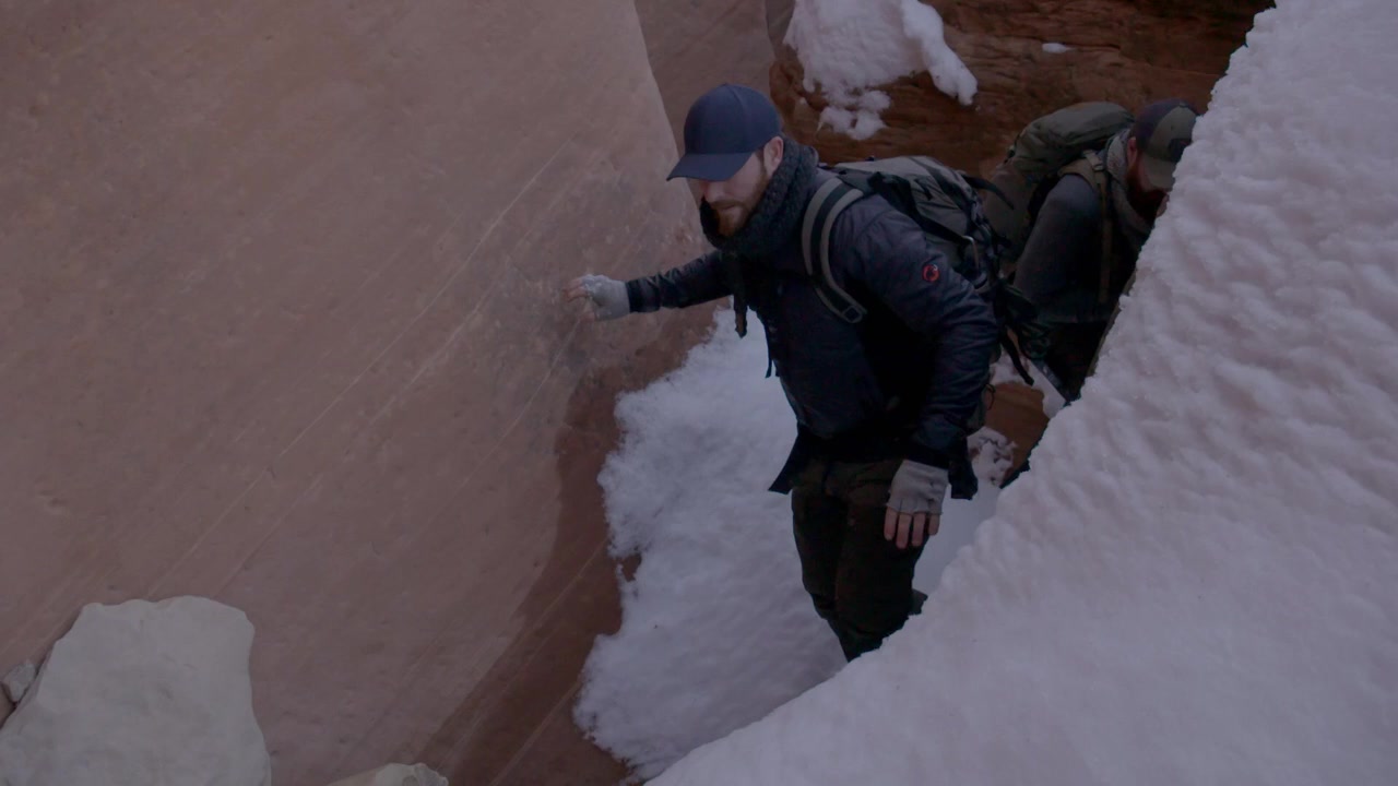 Casey and Chris Keefer trek through snow, slot canyons and rugged terrain in pursuit of a legendary Aztec treasure said to be hidden in the mountains of Utah.