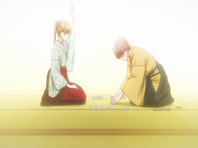 The audience at the Yoshino Tournament is taken for a wild ride with so many unexpected twists: Arata, the focus of high expectations, has been defeated, and Taichi, who only just reached Class A, advances to the finals. And now it`s time at last for the final round between Chihaya and Taichi, teammates who have been practicing together since they were in elementary school. The odds are in Chihaya`s favor, but Taichi isn`t playing his usual karuta since he declared that he would defeat her in an official match.