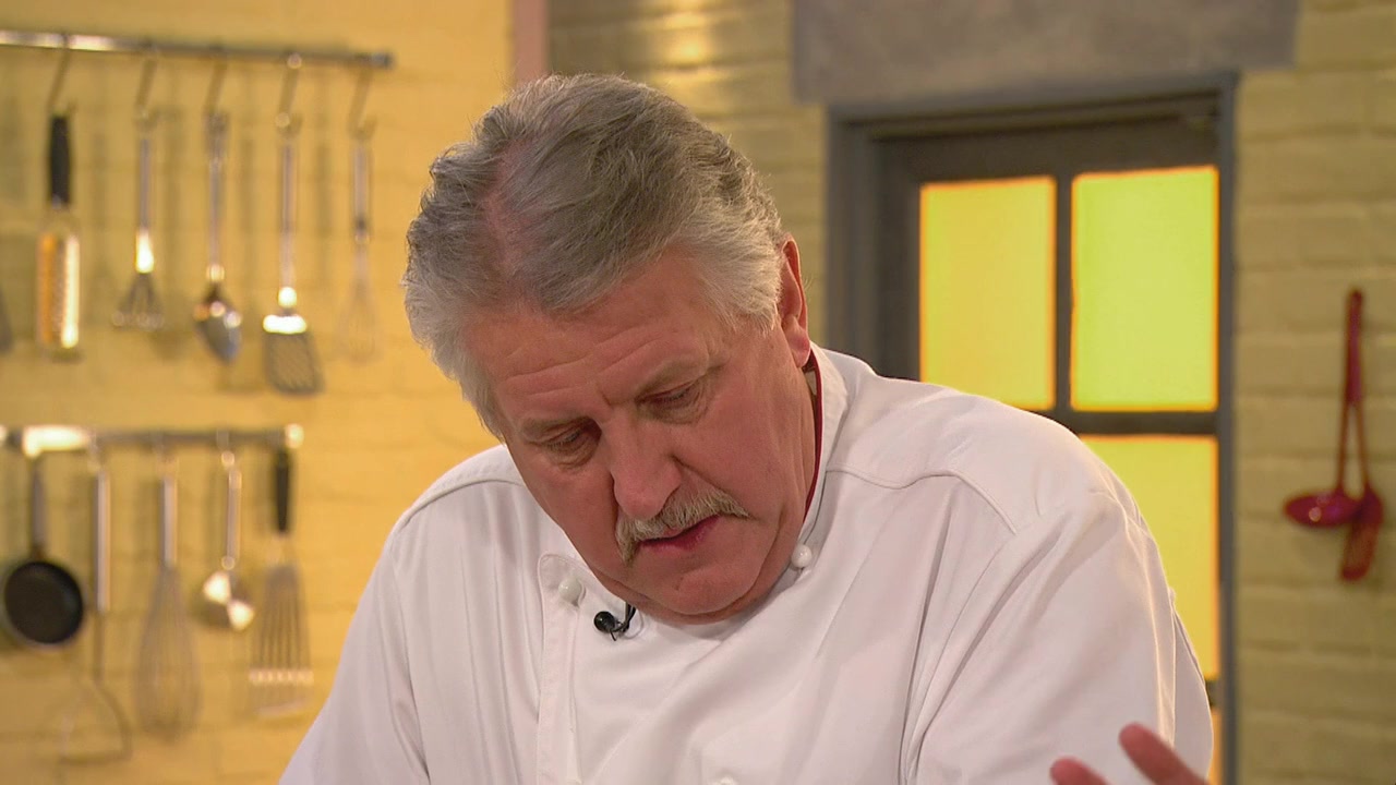 risotto, while Brian goes for roast rack of veal with a soy glaze and creamy