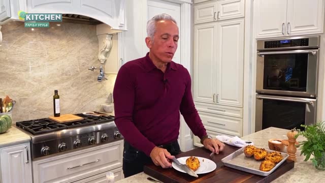 The Kitchen hosts are breaking all the Thanksgiving rules to make a fun, easy and creative feast! Katie Lee and Sunny Anderson kick things off with their twists on turkey: Katie's Bacon Wrapped Turkey Breast with "Stuffing" Croutons and Sunny's Cornish Game Hens and Veggie Holiday Cheat Sheet. Next, Geoffrey Zakarian shakes up sides with his Twice-Baked Sweet Potatoes with Sausage and Ricotta. Then, Jeff Mauro fries up the feast with a Turkey-Tommy Changa. Plus, Katie's pie-inspired Thanksgiving Sundae Duo, a Frozen Apple Pie Margarita, and the host of Food Network's Candy Land, Kristin Chenoweth, joins the party!