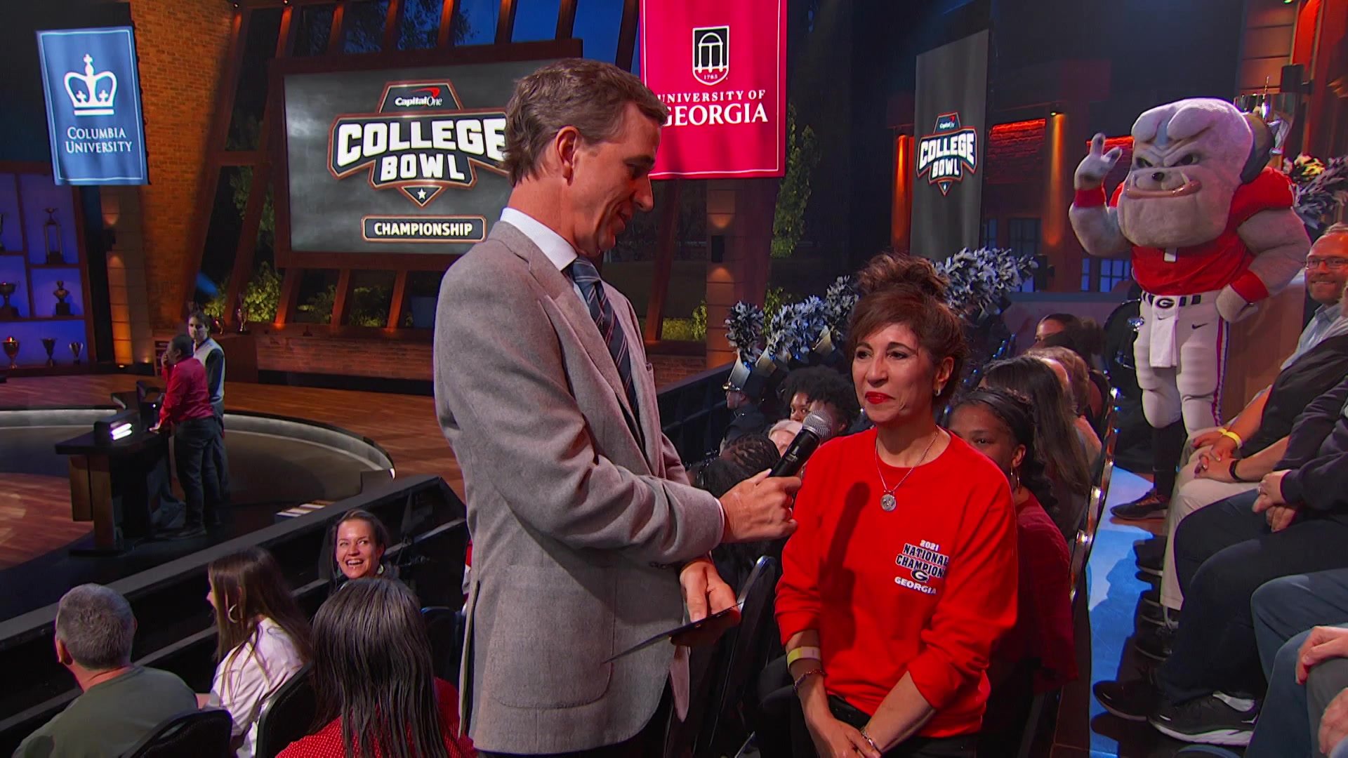 Hosted by NFL legend Peyton Manning and Cooper Manning. Returning champion Columbia University defends its title vs. the University of Georgia. The winning team will take home the Capital One College Bowl trophy and the majority of $1 million in scholarship money.