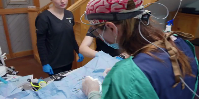 Dr. Oakley treats a kitten with a bulging eye, and Sierra preg checks a miniature cow.
