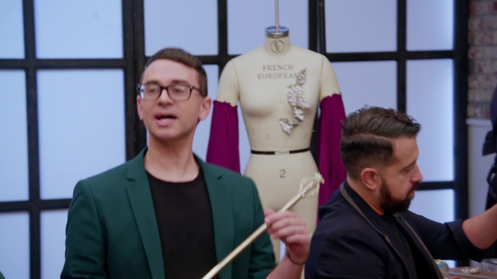 It's the first dreaded team challenge of the season, and the designers are heading to the ball because it's Coronation Day. The designers are blindly paired together and tasked with creating couture modern gowns that exemplify royalty. Wes Gordon, the creative director of Carolina Herrera and a gown expert, serves as a guest judge and helps decide which partners took their gown over the top.