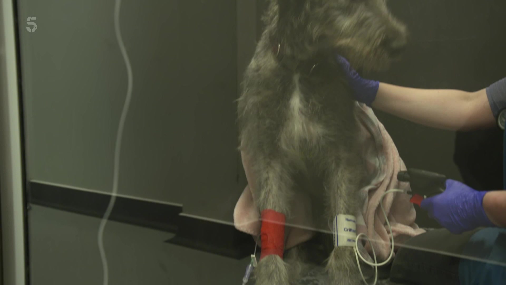 A freak accident leaves a young Irish Wolfhound stuck in a tiny gap between two walls, and Peter treats a pet fish brought to the practice in a bucket of water. Elsewhere, Matt Smith has to perform a rare and complex operation, and Julian Norton treats some sheep feet and helps himself to a tasty farm shop treat.