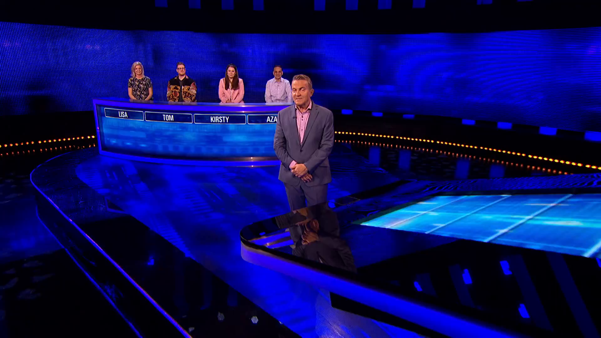 SYNOPSIS: Bradley Walsh hosts as Azad from Derby, Kirsty from Gloucestershire, Tom from Bristol and Lisa from Woking work together as a team to face one of the country's finest quiz brains