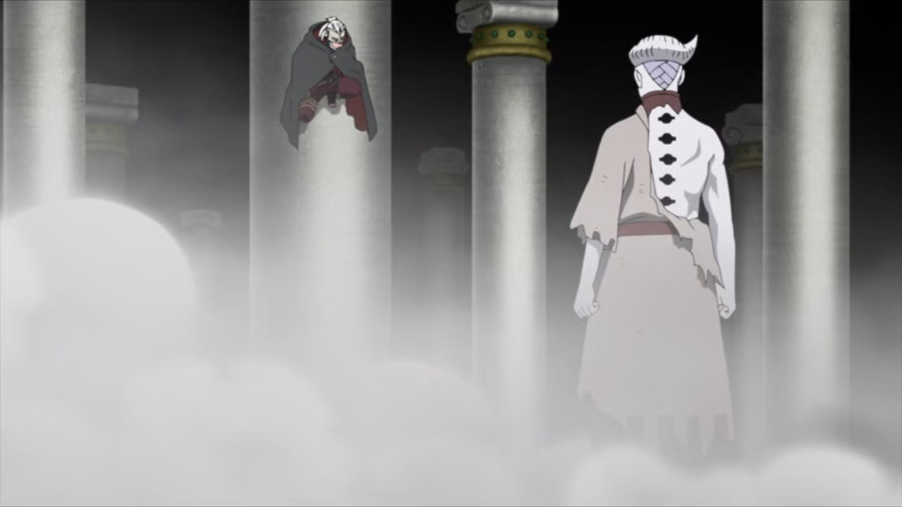 Koji Kashin continues his battle with Jigen, whose body is revealed to have been taken over by Isshiki Otsutsuki.
