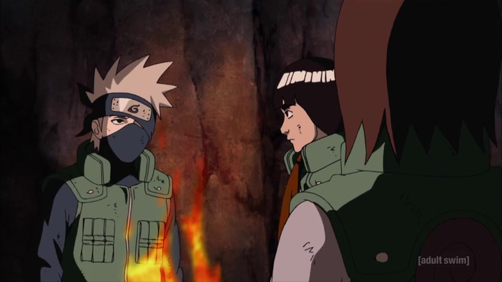 Kakashi races to the scene where the Seven Ninja Swordsmen Kushimaru Kuriarare and Jinpachi Munashi were last sighted. Enraged by the carnage they've left behind, Kakashi teams up with Might Guy.