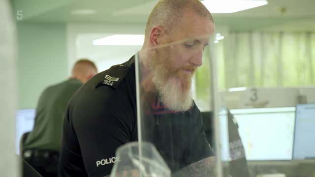 A man is walking around a housing estate allegedly brandishing a nine-inch serrated sword. As the police are called, the man barricades himself in his home and is apparently naked. Armed officers arrive at the scene and coax him off the roof of his house and into the waiting custody van. Collecting the machete as evidence, PC Jamie Roberts comments "We all wear stab vests for a reason."
