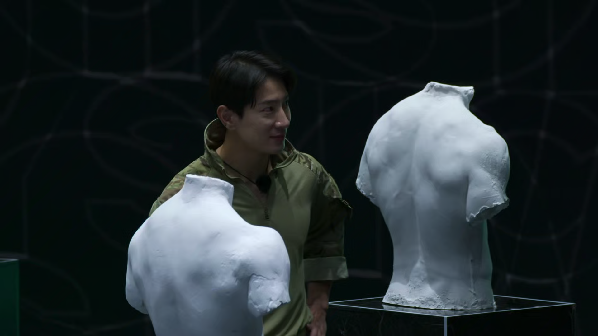 One by one, a hundred contestants arrive in a room filled with plaster torsos of their competitors. The first challenge is introduced.