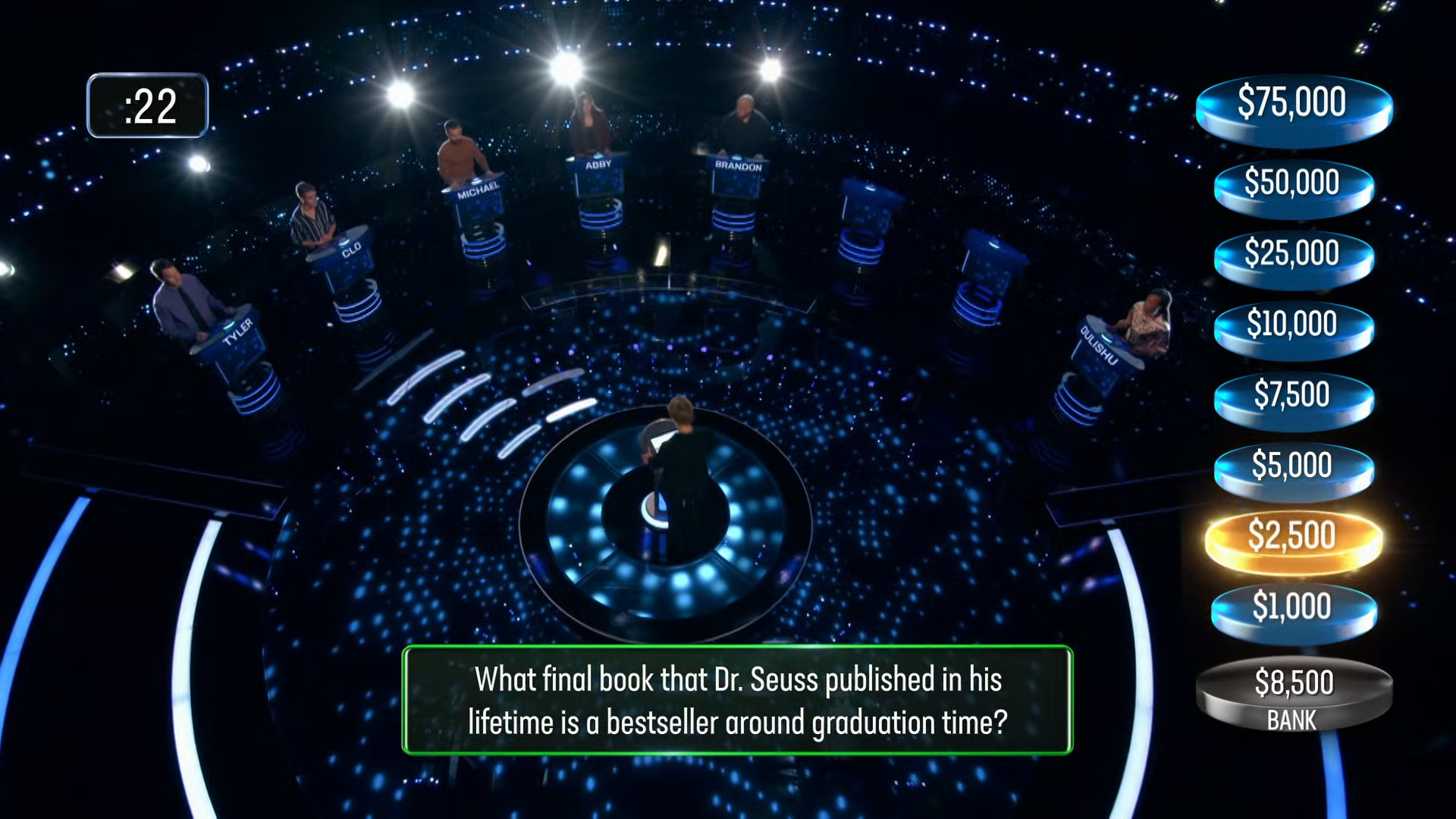 A doctor, bartender, ventriloquist and five others put their trivia knowledge to the test in a high-stakes, winner-takes-all competition with up to a $1 million at stake.