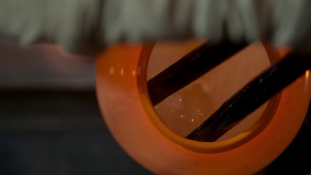 The glassblowers put their presentation skills to the test by creating two pieces — one hanging and one sitting on a pedestal — that work cohesively.