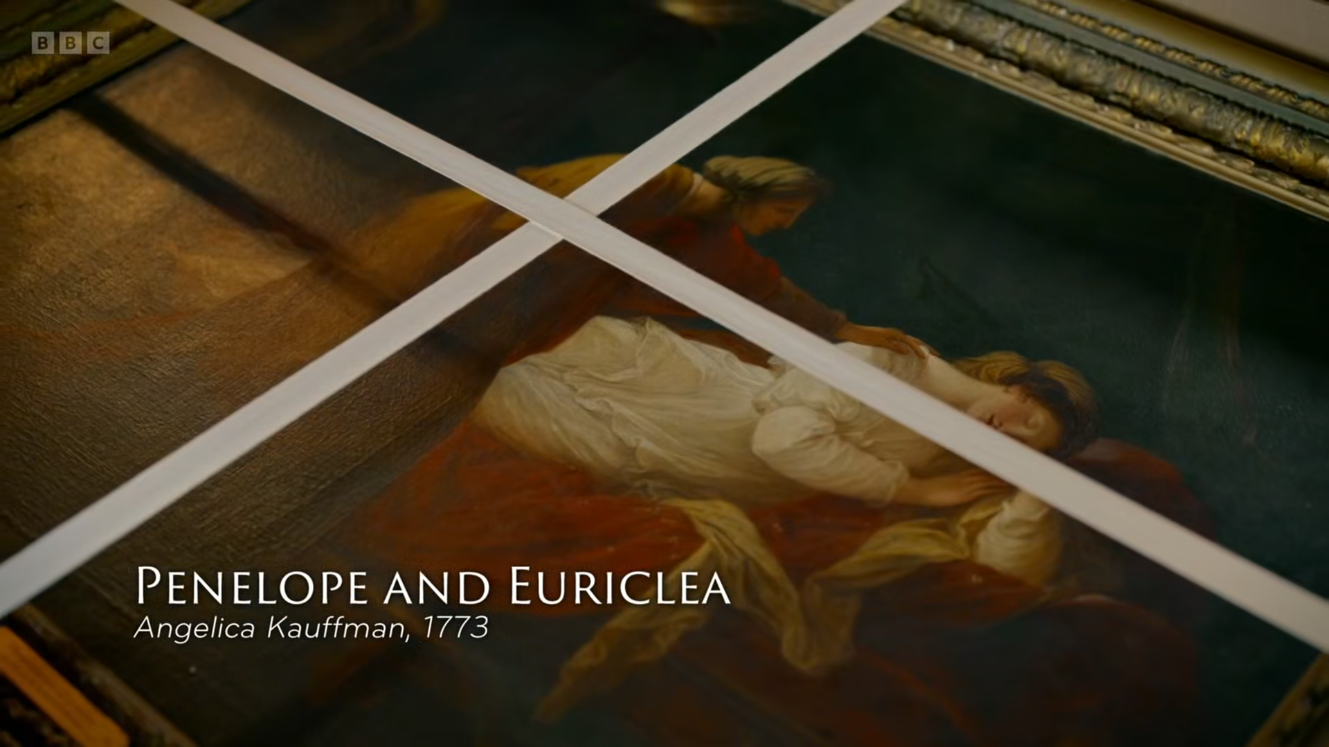 A missing masterpiece - Penelope and Euriclea, by groundbreaking female artist Angelica Kauffman - returns to its stately home, the grand Palladianvilla Stourhead, after two centuries. Plus the search for the lost castle of Stourton and the scrapbooks revealing one man's mission to save English country houses.
