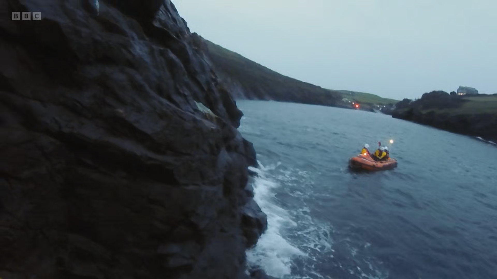 In Port Isaac, on the north coast of Cornwall, the crew race to the rescue of a female casualty with a spinal injury; she's in a precarious position on a rockface, with the light fading. In Pembrokeshire, south west Wales, the Little & Broadhaven crew receive a mayday call about a capsized dinghy with three people in the water.