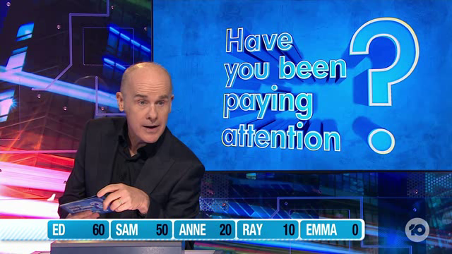 Have Anne Edmonds, Ray O'Leary, Emma Holland, Ed Kavalee and Sam Pang been paying attention? Host Tom Gleisner and special guest quizmaster Dyson Daniels are about to find out.