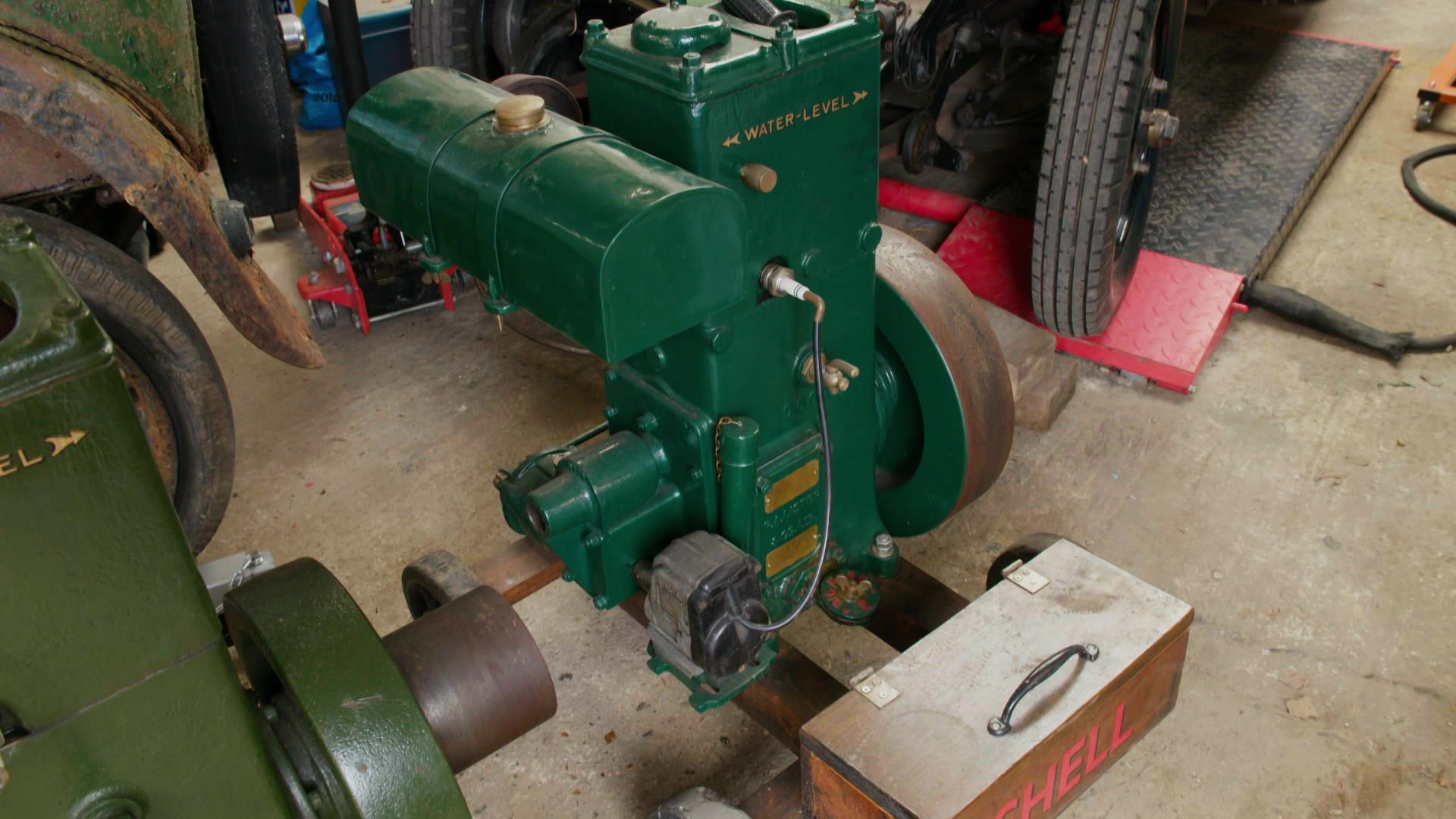 The guys are stuck between a stylish Rover and a 1920s Renault saloon.