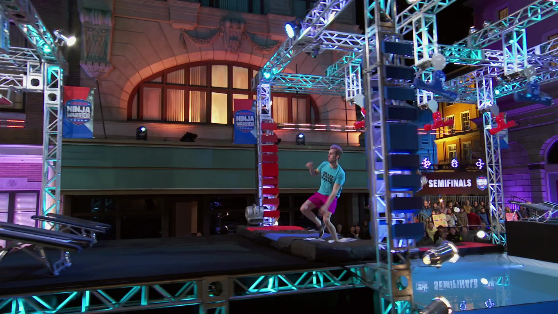 The semifinals begin in Los Angeles where the ninjas will race head-to-head for a spot in the finals. Competitors will face up to six challenging obstacles, including Home Run and Spin Hopper. The two fastest ninjas of the night will race for the Safety Pass going into the national finals.