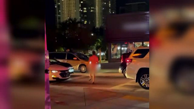 A fan goes for a swim at a celebrity's home; a man runs around the gym and the city of Miami while completely naked; bank robbers toss stolen cash out of their car window, which attracts a crowd of people hoping for a payday.
