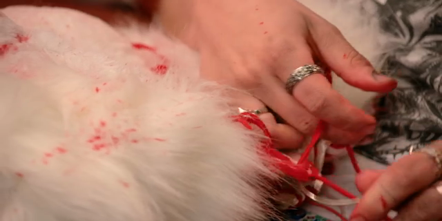 Drag stars craft holiday horror looks.