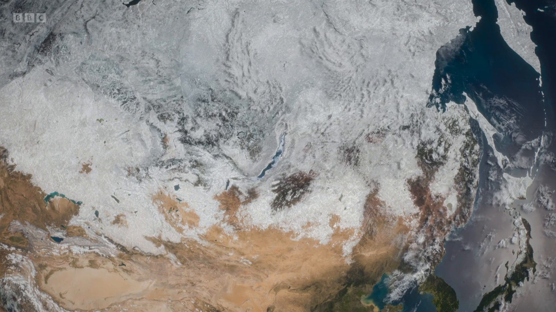 In northern Asia, life defies hostile extremes. In Russia's Lake Baikal, a seal pup must take evasive action when its ice den starts to melt. Hokkaido's thermal springs are a haven for dancing red-crowned cranes. On the Tibetan Plateau, a lone Himalayan wolf hunts antelope. Fish owls thrive in the forests where Russia and China meet. On the Kamchatka Peninsula, brown bears hunt salmon to prepare for hibernation. Elsewhere in Japan, bats hibernate beneath snow, while red foxes and sea eagles compete for food. In Arctic Russia, polar bears wait on isolated lands for the return of sea ice.
