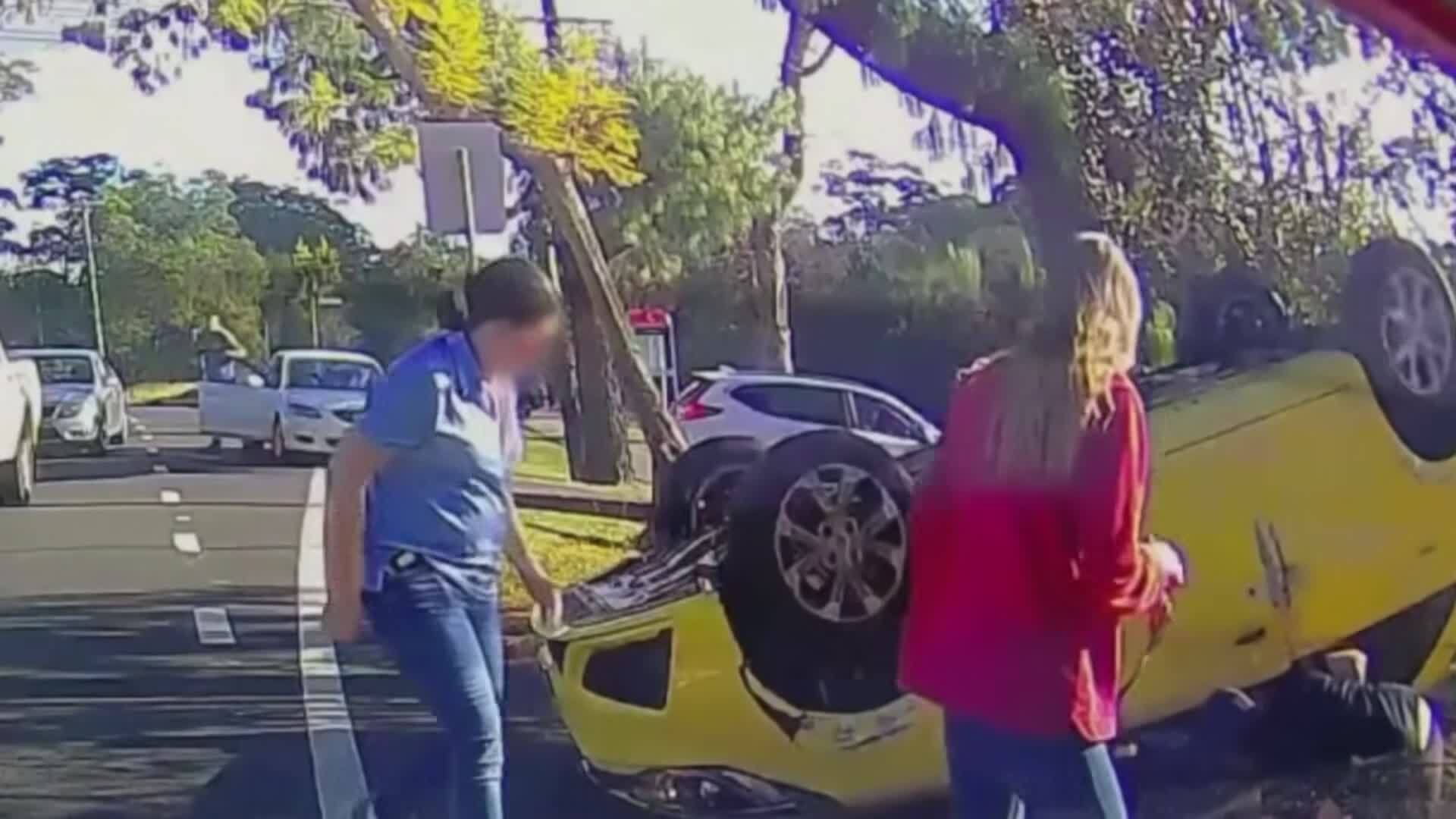 A motorcyclist encounters a young driver whose car is on fire but who refuses to call authorities. In the United Kingdom, a biker and a motorist exchange words and hands at a roundabout. A police officer in Washington must drive through an out of control wildfire. A trucker in Georgia is involved in a tragic accident after his semi stops on the highway.