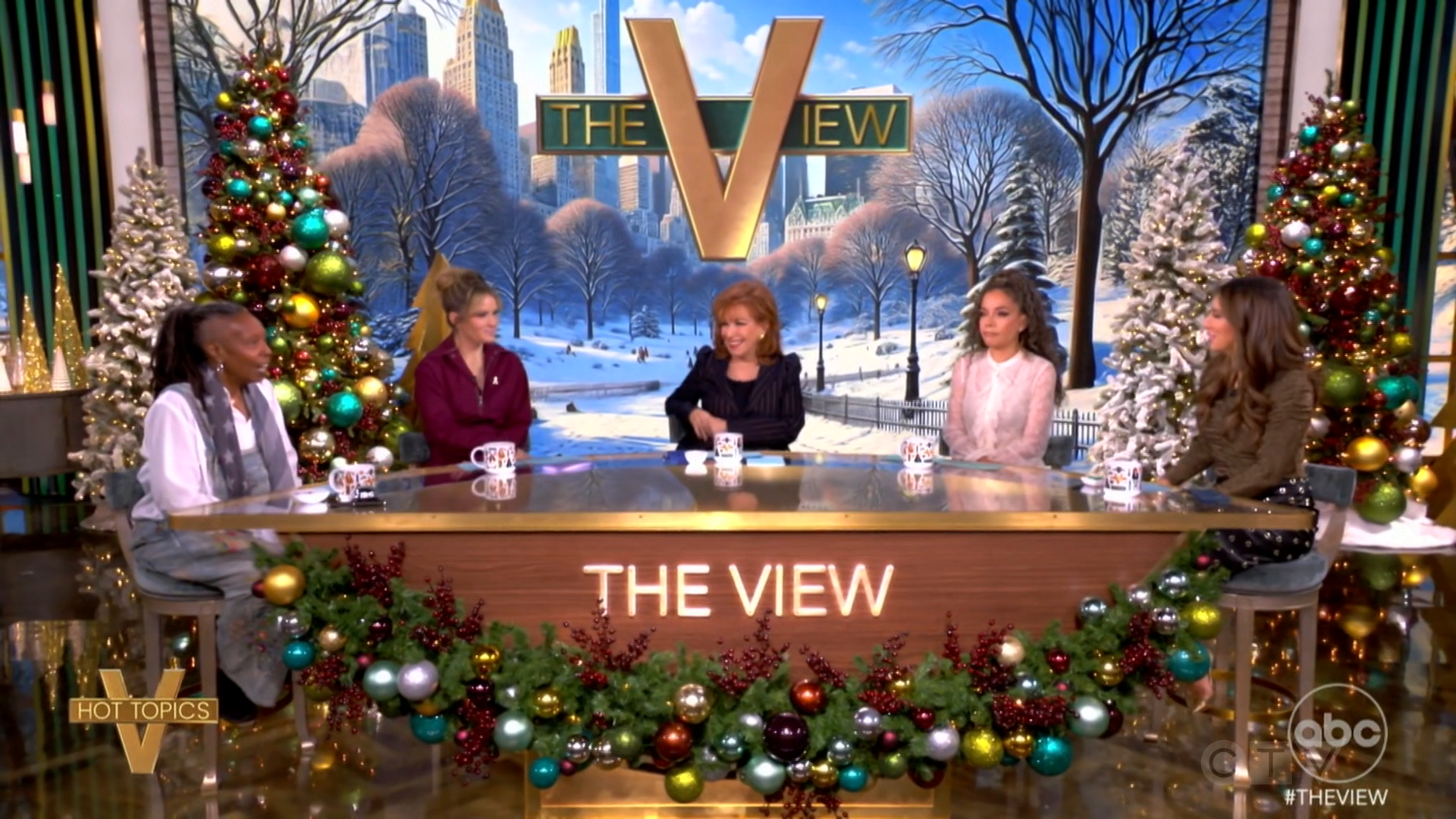 Plot............ The View is a live, one-hour daily talk show from ABC co-hosted by Whoopi Goldberg, Joy Behar, Sunny Hostin, Sara Haines, and Meghan McCain. It is the original forum in which real women discuss everyday issues, share their opinions and engage in colorful conversations.