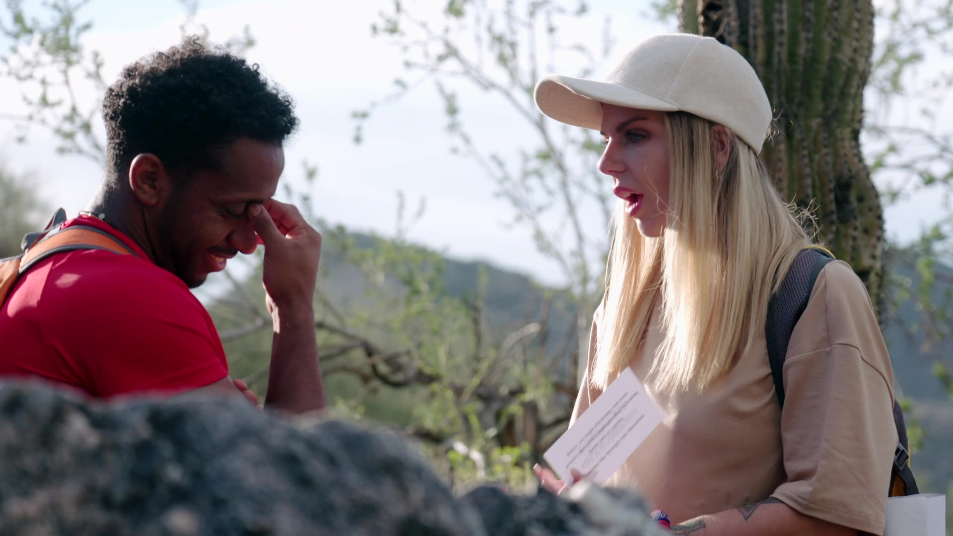The couples head to the desert for a group therapy called "Compromise Canyon." They carry rocks that represent their issues and need to lighten their loads by hashing them out.