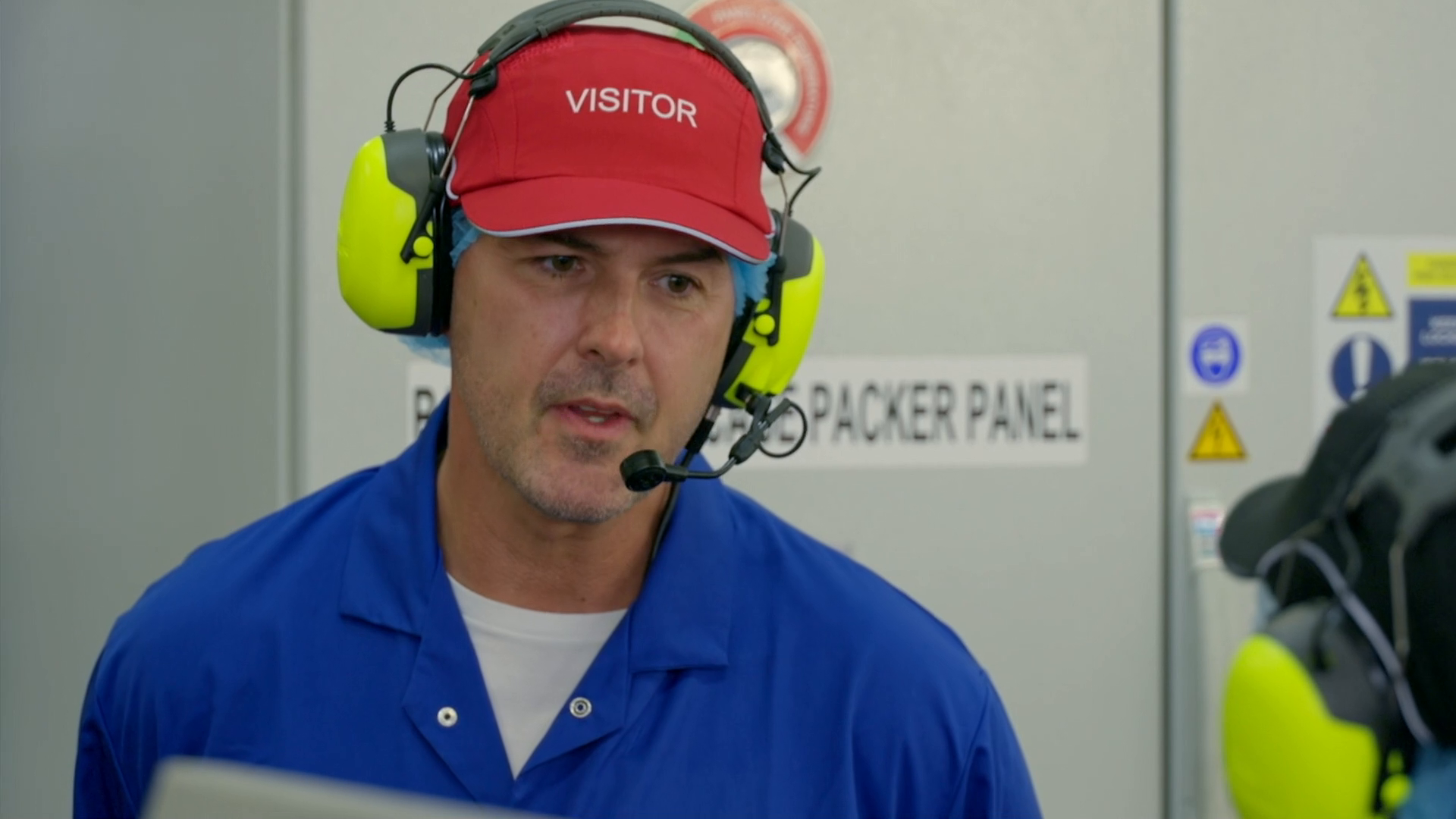 This is a huge and very hot factory! Comparing it to getting off a plane on holiday, Paddy exclaims, ‘this is like landing on the sun!' But he soldiers on to the next stage of production. After mixing, the dough is forced under very high pressure through an extruder, emerging as a continuous one-millimetre-thick sheet. It looks more like a lasagne sheet at this stage and the process is nothing like Paddy imagined it would be.