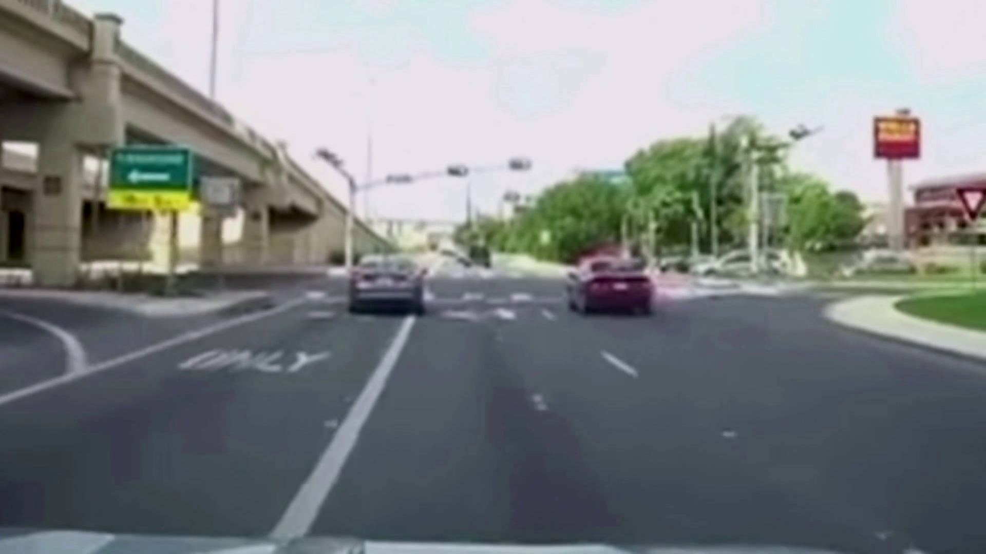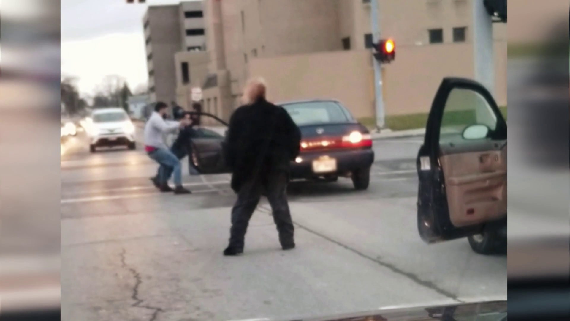 A woman is dragged by a car along a Delaware highway after an apparent dispute. In Brazil, a delivery driver fights back when she believes that a man is attempting to steal her motorcycle. A construction truck's raised crane wrecks havoc through a Brooklyn street. Police in California pursue a suspect. In Albuquerque, a sedan plows into a school bus filled with children.