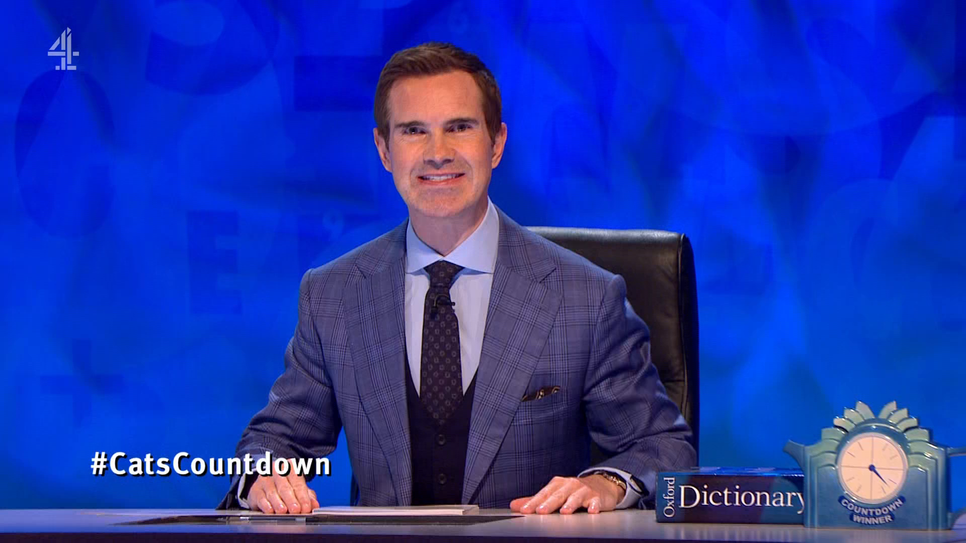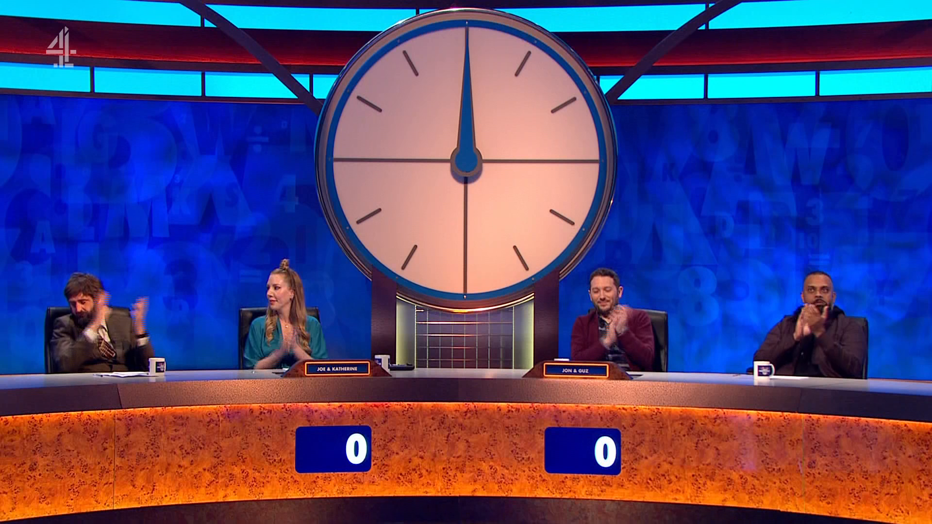 Jimmy Carr hosts a hybrid of the comedy panel show and words-and-numbers quiz, as on Jon Richardson and Guz Khan take on guest captain Katherine Ryan and Joe Wilkinson. Mathematician Rachel Riley looks after the letters and numbers, while Alasdair Beckett-King joins lexicographer Susie Dent in Dictionary Corner