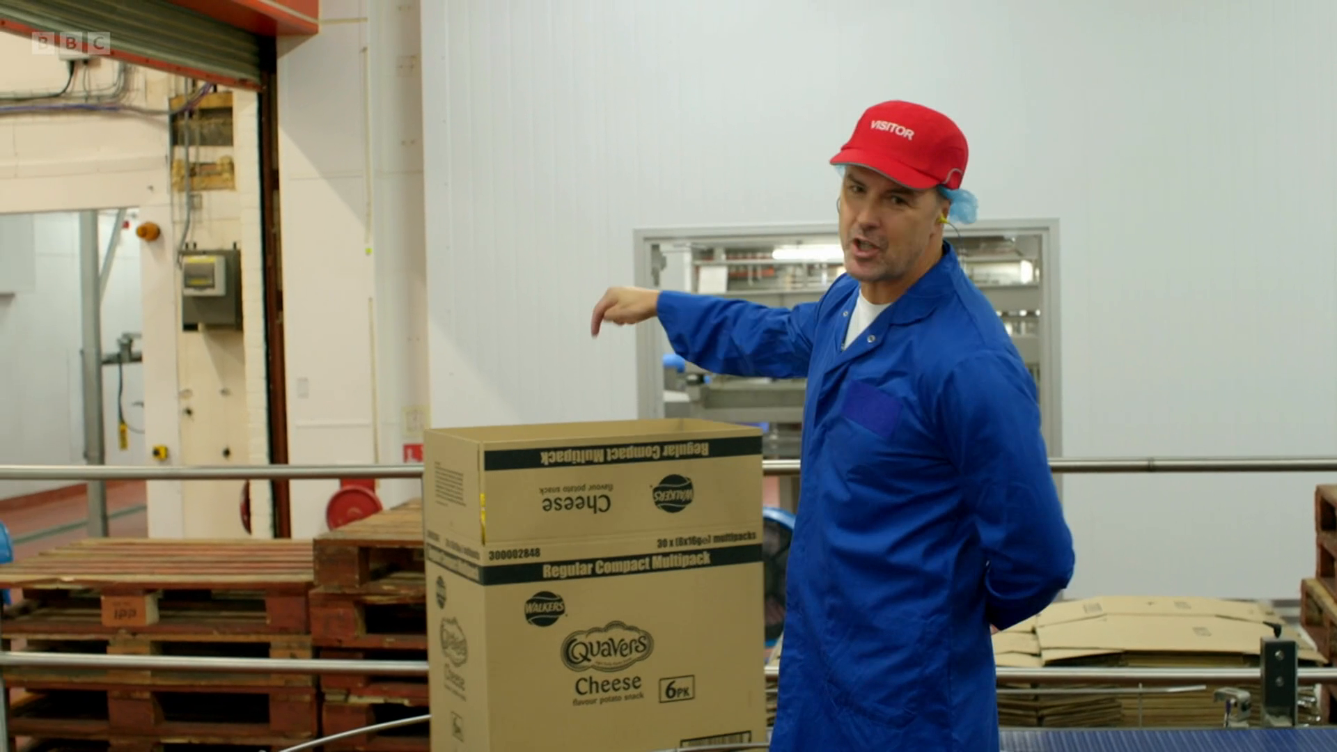Finally, the multipacks are put into boxes and placed on pallets before making their way to the dispatch area. There, Paddy learns how 93,600 packets are loaded onto each waiting lorry, before being sent to shops and supermarkets across the country.