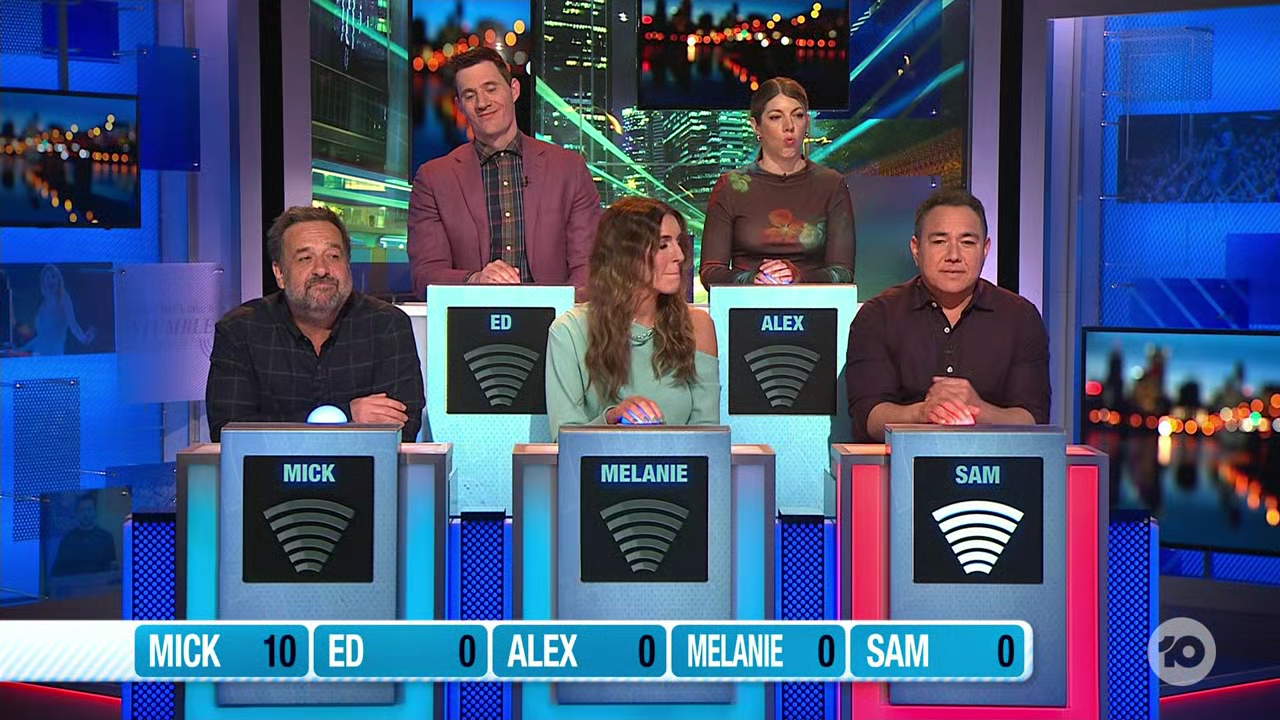 Have Mick Molloy, Melanie Bracewell, Alex Ward, Ed Kavalee and Sam Pang been paying attention? Host Tom Gleisner and special guest quizmaster Felix Cameron are about to find out.ng and Ed Kavalee.