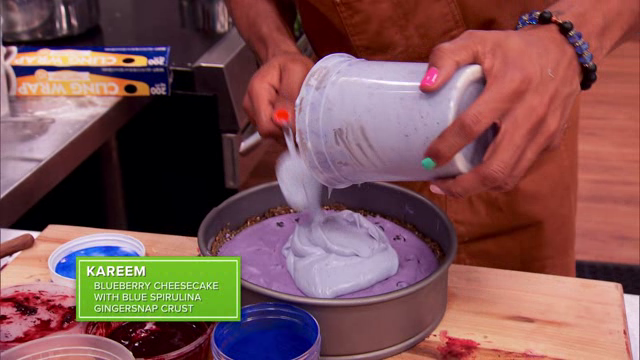 Jesse Palmer surprises the 11 bakers with a towering, whimsical madeleine sculpture and asks them to create their own impressive madeleine tower infused with an assigned tea flavor. Then, the competitors unleash their creativity by crafting rainbow cheesecakes for judges Duff Goldman, Kardea Brown and Nancy Fuller, with each cheesecake featuring a unique fruit flavor and a rainbow inside.