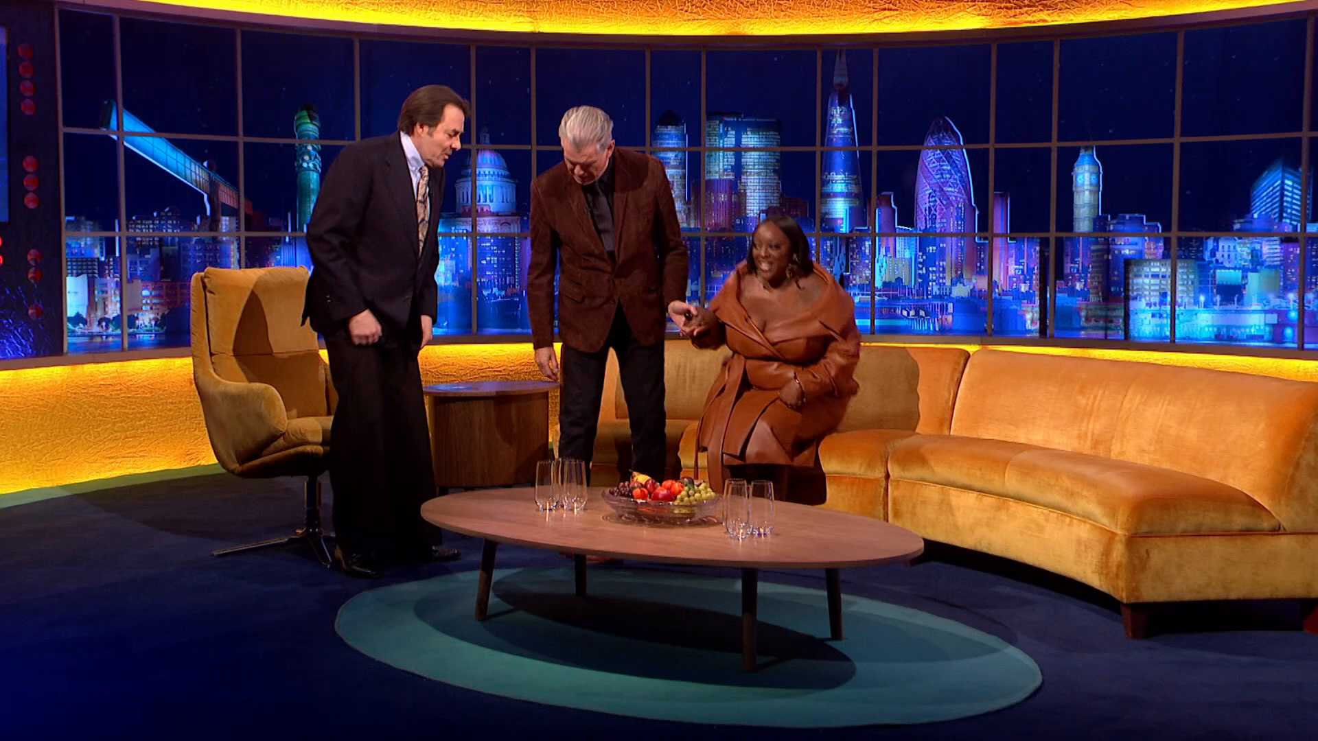 The host is joined in the studio by actor Pierce Brosnan, the stars of hit TV show Severence; Ben Stiller, Adam Scott and Britt Lower and comedians John Bishop and Judi Love. With a musical performance from AJ Tracey and Jorja Smith.
