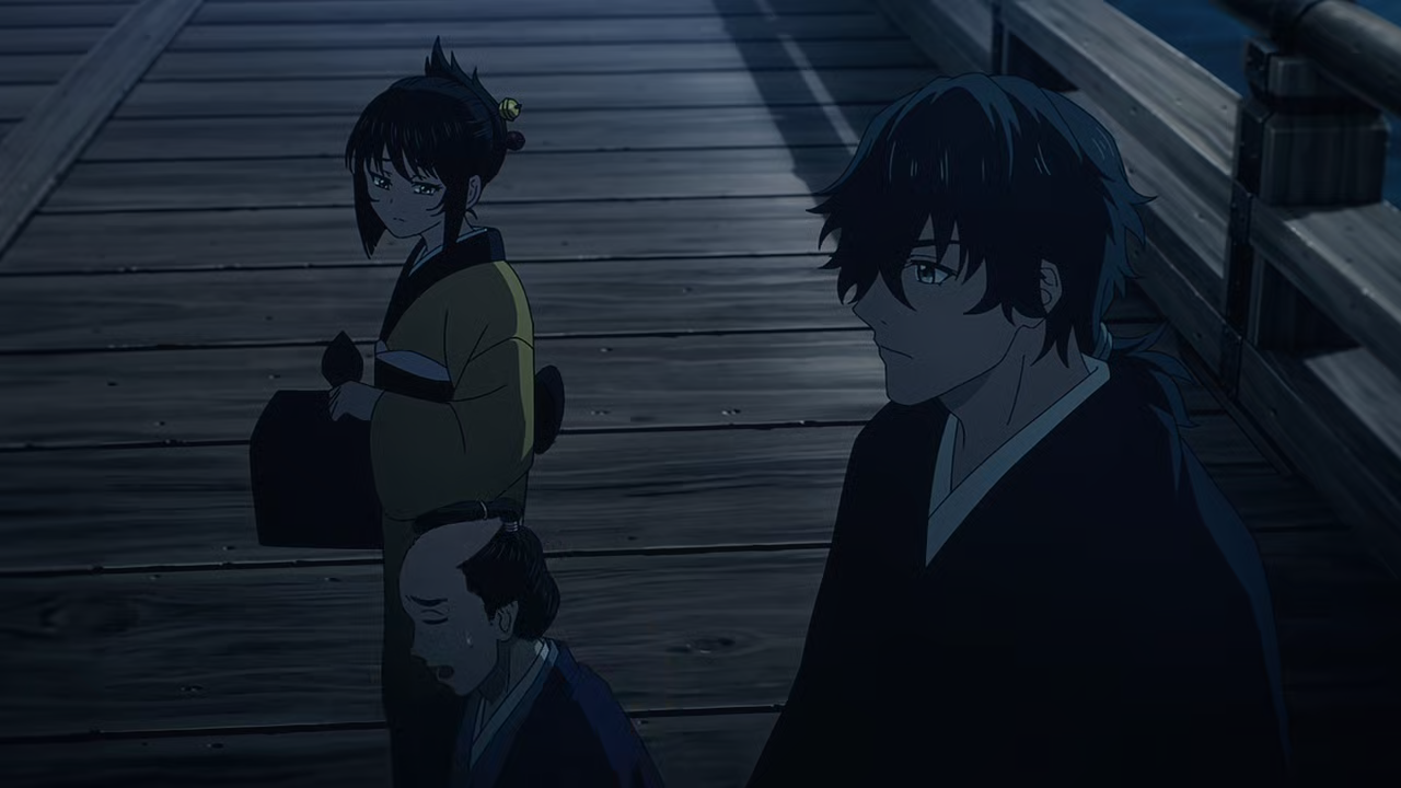 Jinya and Natsu get attacked by the slasher thought to be a demon. After Mosuke arrives to help and Jinya brandishes his blade, the demon quickly vanishes into the darkness.