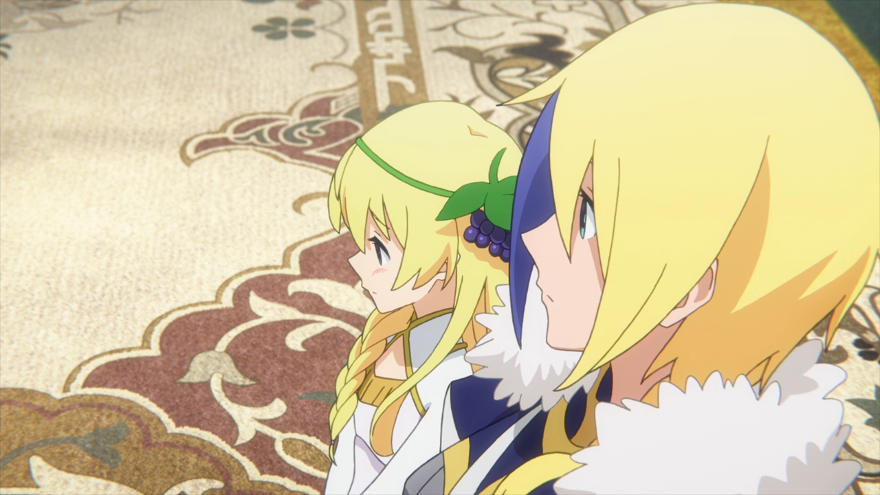 What started as dinner at Darkness's mansion with Princess Iris has turned into Kazuma being dragged back to the castle! Rain explains the situation, and Kazuma agrees to keep Iris company. His wild stories leave the princess with stars in her eyes.