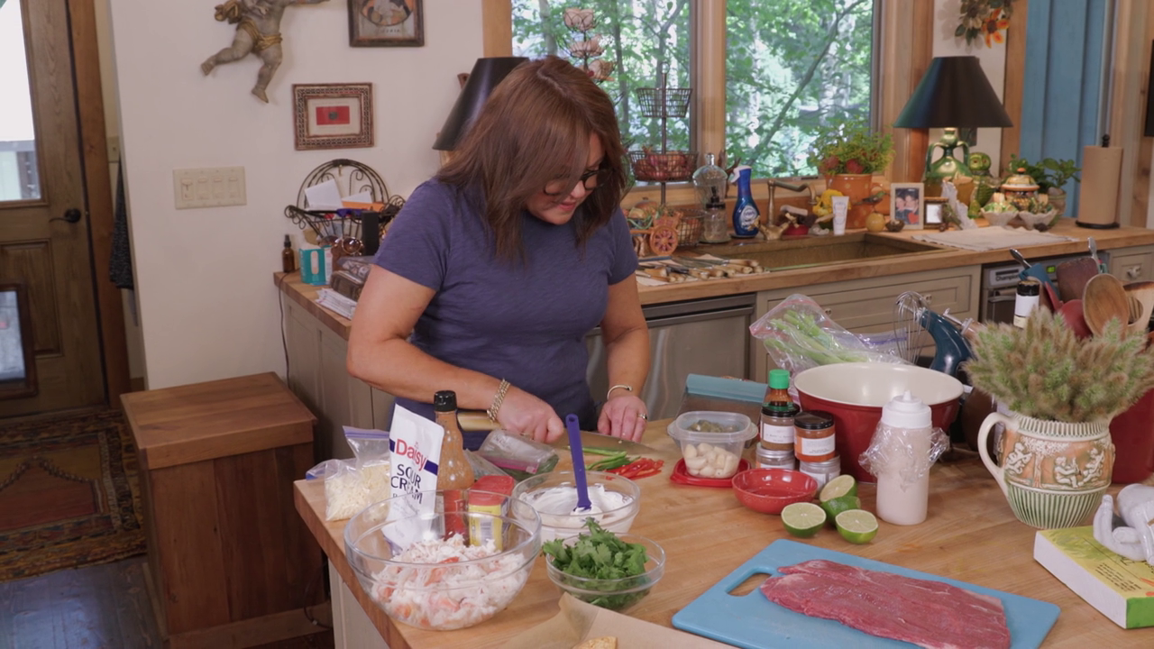 demonstrates her creativity and flair from her personal home kitchen, cooking a complete