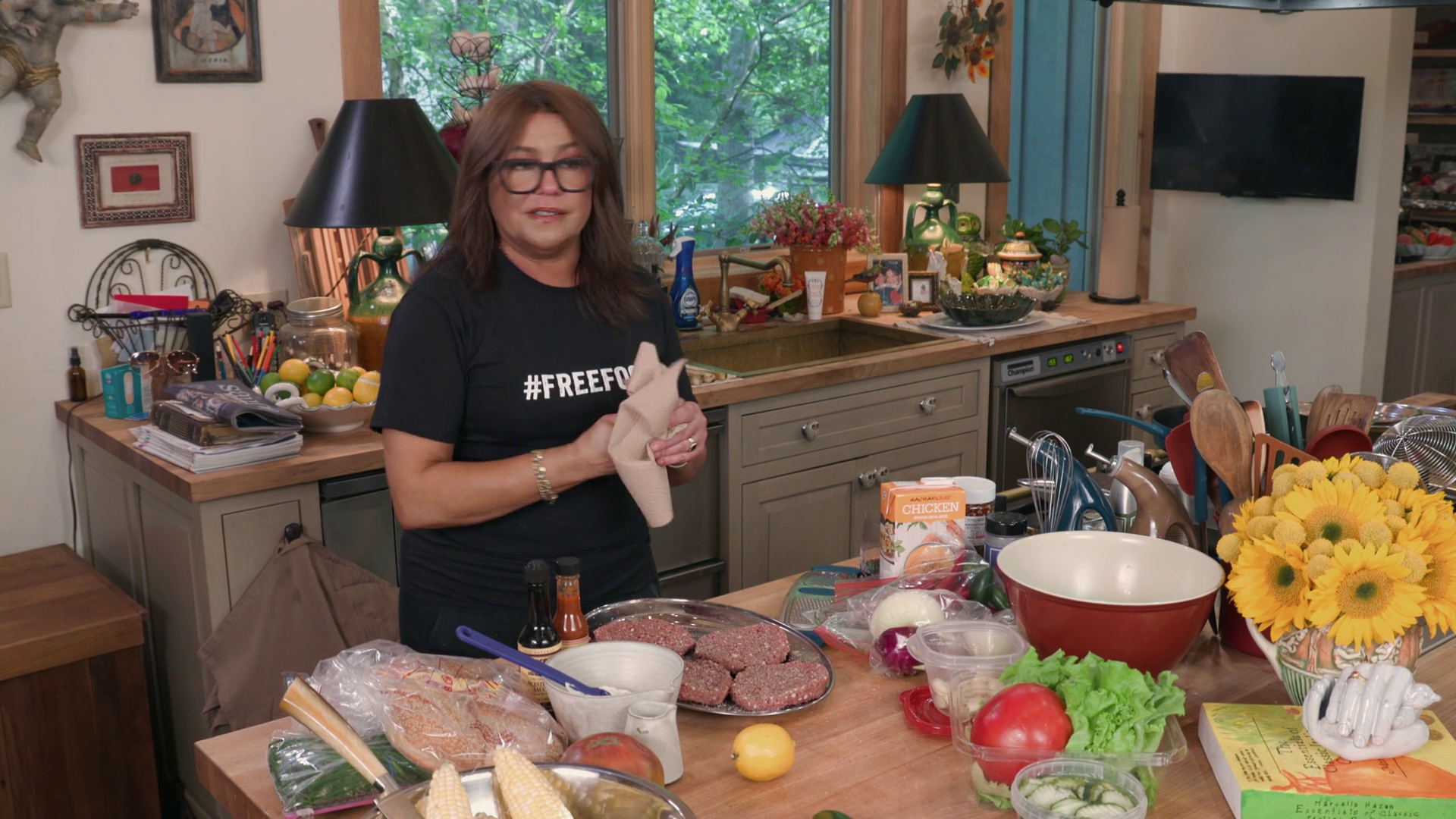 demonstrates her creativity and flair from her personal home kitchen, cooking a complete