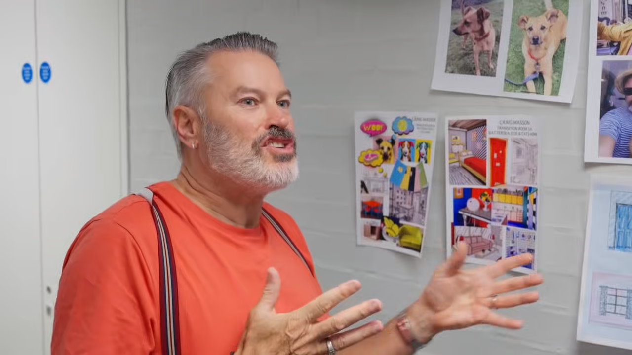The designers create a home from home for dogs at Battersea. Sue Perkins helps Michelle judge these transition rooms along with a couple of Pomeranian rescues.