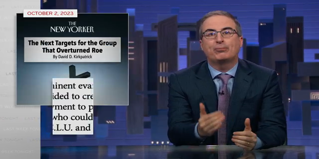 John Oliver takes a look at the Alliance Defending Freedom – the legal organization behind several landmark Supreme Court cases, including the Dobbs case that overturned Roe v. Wade. Plus, a five-star book review of a one-star book.