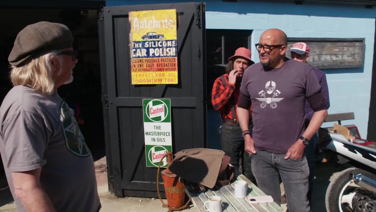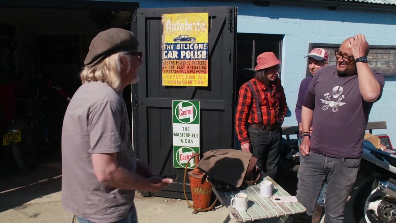 Henry and Fuzz visit Andrew in Warwickshire, where sheds overflow with all manner of bikes, cars, and automotive memorabilia.