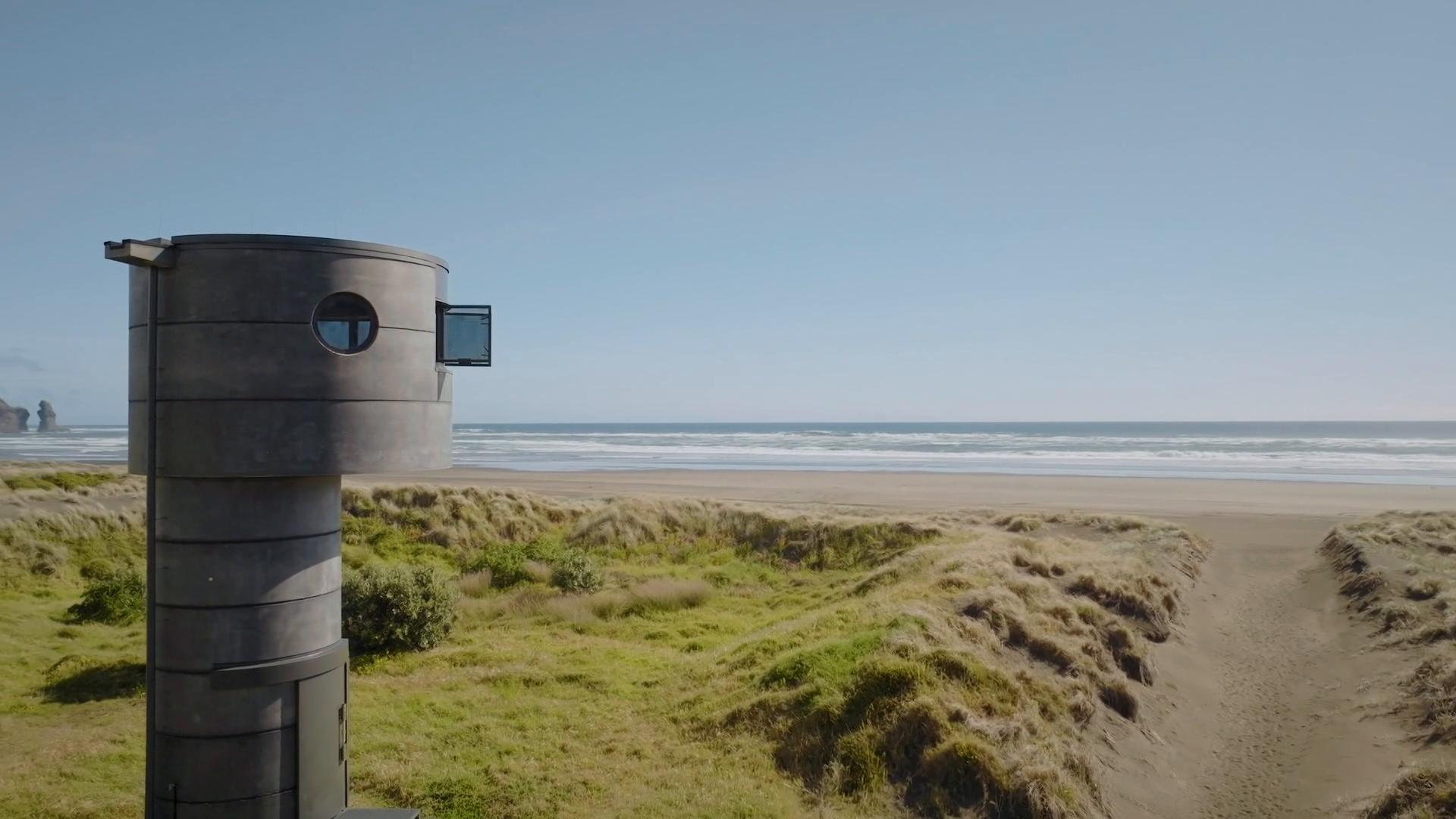 A concrete, steel and glass citadel above a popular Auckland beach combines austere functionality with luxury living.