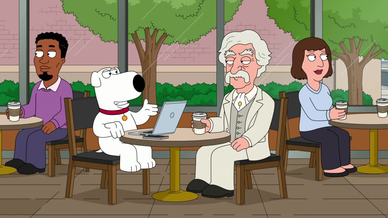 Brian plans to improve his writing by convincing Stewie to go back in time and bring Mark Twain to the present-day.