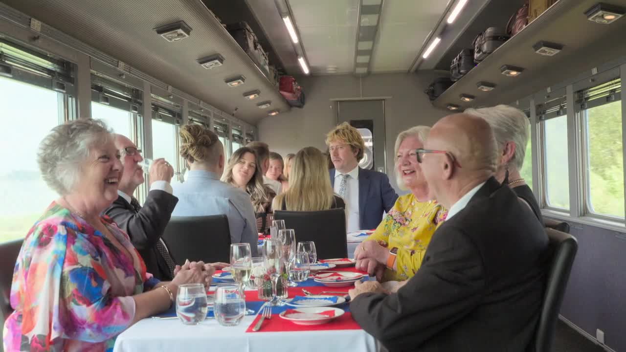 Two teams must prepare a VIP dining experience aboard a moving steam train.
