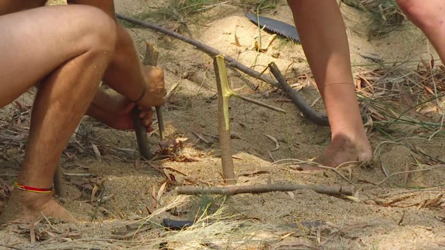 While tracking a wild boar, Laura discovers a shocking animal nest. To avoid elimination, camps scramble to build baited spring snare traps. Tensions rise when Patrick questions Jermaine's hunting tactics. One competitor is eliminated.