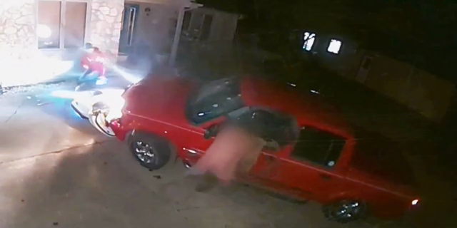 A car owner in Indiana opens fire at a pickup truck charging toward him in his driveway. In Australia, a tight lane change prompts a motorcyclist to strike a car's mirror. Emergency personnel assisting a stalled car in Iowa are caught in the path of a wayward sedan. Police in Brazil engage in a harrowing pursuit of a couple on a motorcycle. A Montana man inadvertently drives off in someone else's car with their dog inside.