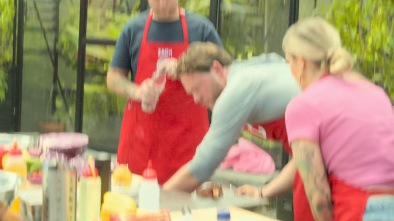 The duos are split into two teams and must serve a garden full of barbecue aficionados.