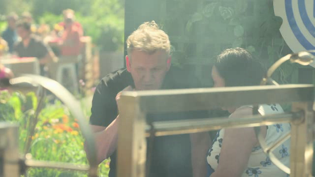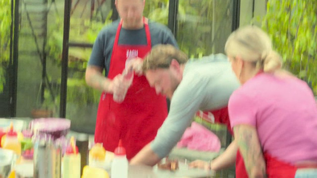 The duos are split into two teams and must serve a garden full of barbecue aficionados.