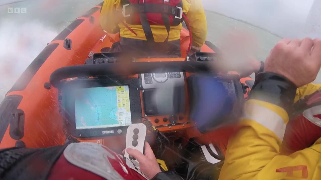 With a storm battering the south coast of England, a windsurfer is in trouble. The Portsmouth crew have to decide whether it's even safe for them to launch.