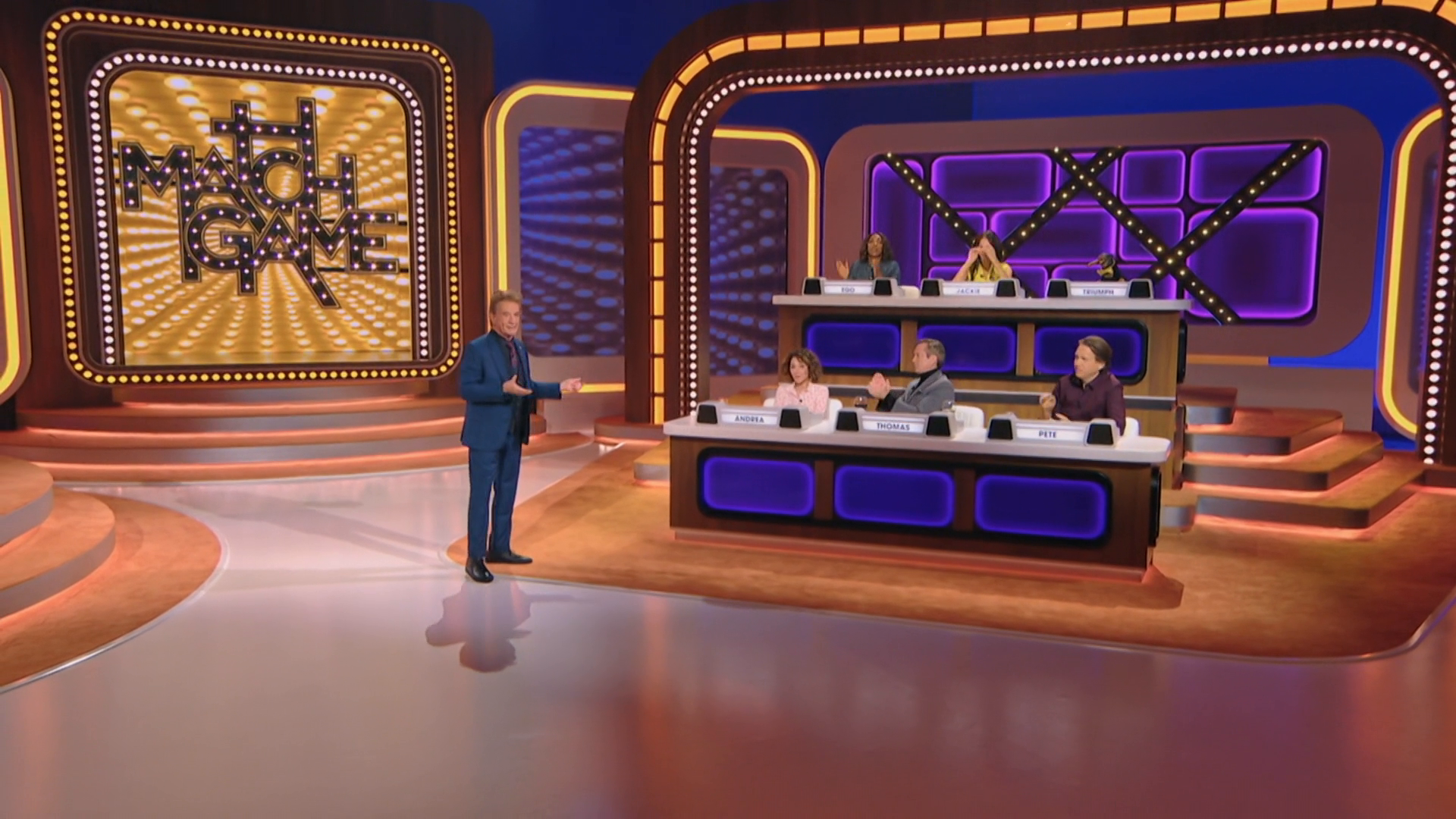 Celebrity contestants Ego Nwodim, Jackie Tohn, Triumph the Insult Comic Dog, Andrea Martin, Thomas Lennon and Pete Holmes.